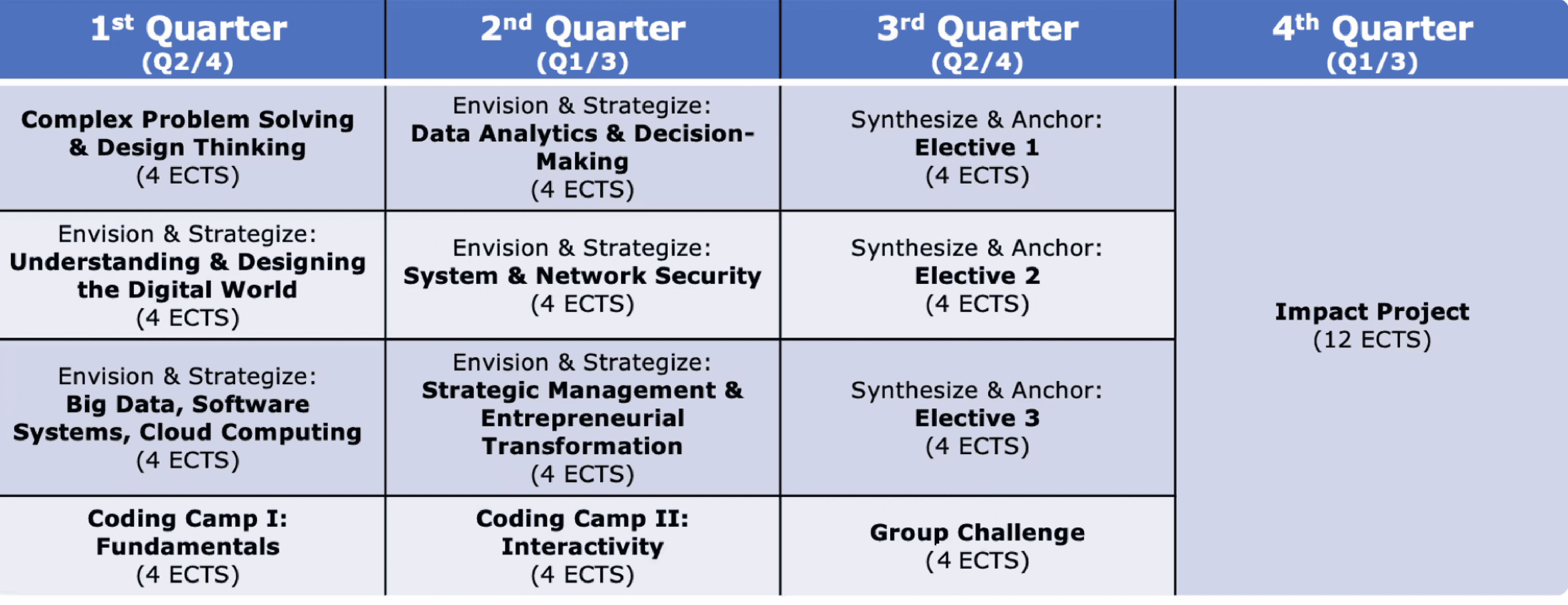 - Duration: Online, One year, 4 Quarters, 60 ECTS